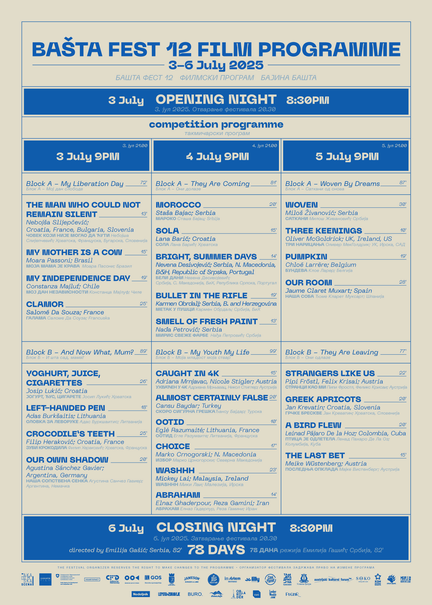 U okviru revijalnog programa, prikazuje se film zatvaranja, debitantski dugometražni film iz zemlje ili regiona, koji je, po mišljenju festivalskog tima, obeležio proteklu godinu.